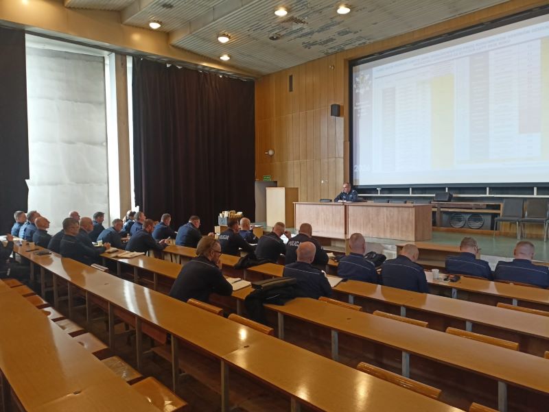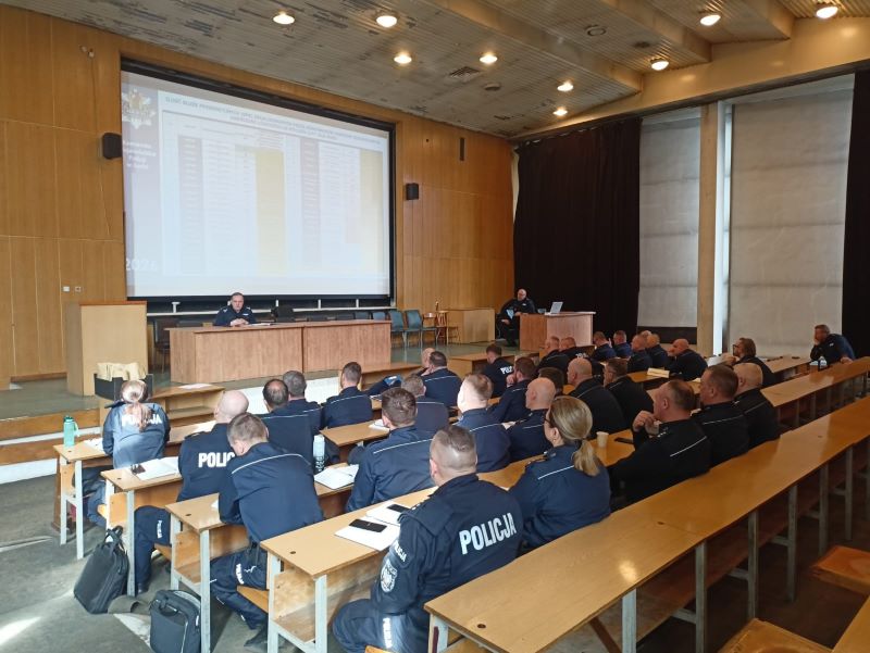 Uczestników spotkania powitał Naczelnik Wydziału Prewencji Komendy Wojewódzkiej Policji w Łodzi mł. insp. Artur Kawucha, podkreślając znaczenie współpracy oraz wymiany doświadczeń w realizacji codziennych zadań służbowych. Głównym celem spotkania było omówienie realizacji dotychczasowych działań za okres od stycznia do lutego zgodnie z Planem Działalności Komendanta Wojewódzkiego Policji w Łodzi na 2026 rok. Spotkanie została podzielona na panele tematyczne. W trakcie trwania narady przeanalizowano wybrane obszary funkcjonowania służby prewencyjnej. Przedstawione dane oraz wnioski pozwoliły na określenie dalszych kierunków działań i priorytetów w zakresie zapewnienia bezpieczeństwa i porządku publicznego. Istotnym elementem narady było omówienie programu przeciwdziałania przemocy domowej w rodzinach policyjnych „MOC – tak, PRZEMOC – nie!”. Program ten, wprowadzony do użytku służbowego w styczniu 2026 roku, określa procedury postępowania w przypadku ujawnienia przemocy domowej w środowisku funkcjonariuszy Policji. Jego celem jest nie tylko przeciwdziałanie zjawisku przemocy, ale także zapewnienie wsparcia osobom nią dotkniętym oraz wzmacnianie standardów etycznych w służbie. Podczas odprawy poruszono również temat ogólnopolskiej kampanii profilaktycznej #Znam TeNumery”, realizowanej przez Komendę Główną Policji we współpracy z partnerami społecznymi. Kampania skierowana jest głównie do seniorów oraz ich rodzin i ma na celu zwiększenie świadomości na temat metod działania oszustów, w szczególności w zakresie oszustw telefonicznych i internetowych. Promuje ona proste zasady bezpieczeństwa, takie jak ograniczone zaufanie do nieznanych rozmówców, weryfikowanie przekazywanych informacji oraz kontakt z bliskimi w sytuacjach budzących wątpliwości. W trakcie narady uczestnikom przekazano również materiały informacyjne, w tym ulotki, które będą wykorzystywane w działaniach profilaktycznych w jednostkach terenowych. Uzupełnieniem spotkania było szkolenie obejmujące wybrane elementy dotyczące problematyki czynności wyjaśniających w sprawach o wykroczenia.