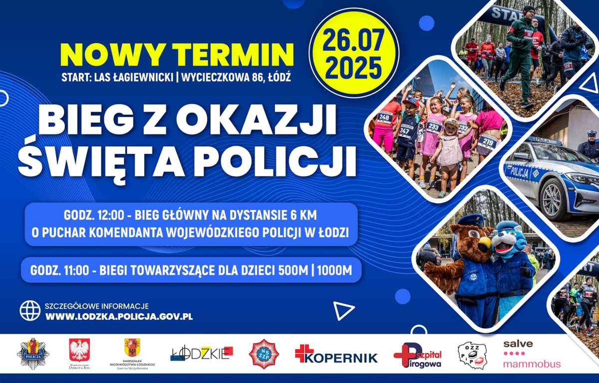 Niestety z uwagi na niesprzyjające warunki hydrologiczne i atmosferyczne piknik Bezpieczne Wakacje z Mundurem planowany w Atlas Arenie 12 lipca 2025 roku nie odbędzie się. Natomisat bieg z okazji Święta Policji, który miał odbyć się tego samego dnia zostaje przeniesiony na dzień 26 lipca 2025 roku w godz 10:00 - 14:00. Bieg odbędzie się w Lesie Łagiewnickim w Łodzi ulica Wycieczkowa 86.