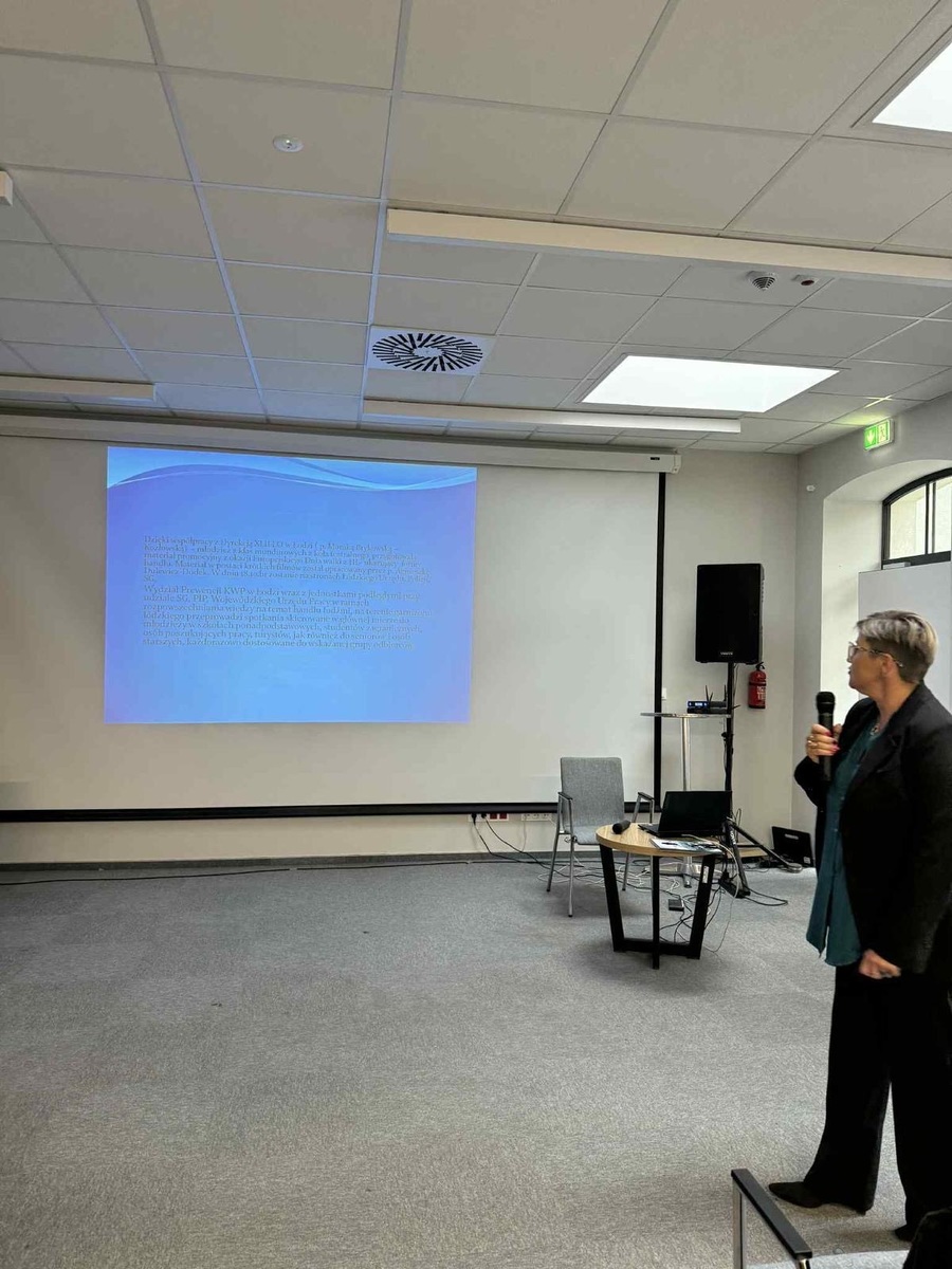 Seminarium rozpoczęło się o godz. 9:30. Po powitaniu uczestników i krótkim wprowadzeniu, organizatorzy – w ramach obchodów Europejskiego Dnia Walki z Handlem Ludźmi – zaprezentowali problematykę handlu ludźmi jako jednej z najpoważniejszych form naruszenia praw człowieka: obejmującą m.in. wykorzystywanie do pracy przymusowej, prostytucji, żebractwa czy przestępczości. Uczestnicy wysłuchali także studiów przypadków, przeanalizowano mechanizmy werbunku, nowe formy wykorzystywania oraz sygnały ostrzegawcze, które mogą wskazywać, że ktoś może stać się – lub już jest – ofiarą handlu ludźmi. Do wystąpienia została zaproszona również mł. insp. Małgorzata Ratajczyk. W swoim wystąpieniu skupiła się na roli służb policyjnych w zakresie przestrzegania praw człowieka oraz monitorowaniu działań w komórkach Policji, aby zapewnić, by każde działanie mundurowych było zgodne z godnością i wolnością człowieka. Następnie głos zabrała podinsp. Edyta Gerwatowska – która przedstawiła konkretne wyzwania i kierunki współpracy w ramach Wojewódzkiego Zespołu Przeciwdziałania Handlowi Ludźmi: m.in. wymianę informacji pomiędzy instytucjami, prowadzenie działań edukacyjnych i profilaktycznych oraz wsparcie ofiar. Oba wystąpienia spotkały się z zainteresowaniem uczestników, którzy w kolejnym bloku mieli możliwość zadawania pytań i dzielenia się doświadczeniami ze swojej pracy w środowisku służb, organizacji pozarządowych i instytucji społecznych. Wydarzenie w Łodzi przypomniało, że chociaż handel ludźmi często funkcjonuje „po cichu”, dotyczy także naszego regionu i wymaga zaangażowania wielu podmiotów. Seminarium stało się okazją do wzmocnienia świadomości społecznej i interdyscyplinarnej współpracy.