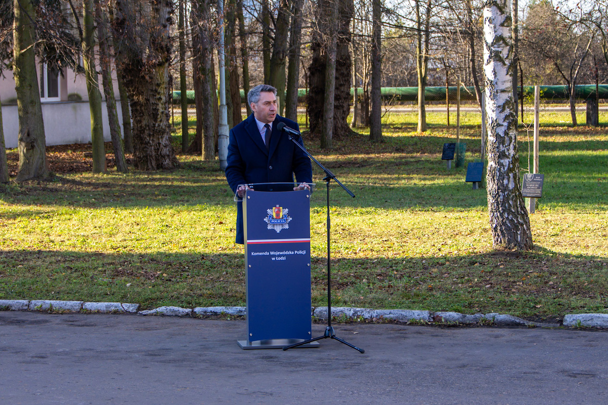 W trakcie uroczystości głos zabrał nadinsp. Arkadiusz Sylwestrzak Komendant Wojewódzki Policji w Łodzi, który podkreślił, że ,,…Katyń to symbol cierpienia ale także niezłomności polskiego ducha…”. Następnie podziękował wszystkim tym, którzy pielęgnują pamięć o zbrodni katyńskiej. Kolejno głos zabrał Pan Jarosław Olbrychowski Prezes Stowarzyszenia Rodzina Policyjna 1939 roku w Łodzi. W swoim wystąpieniu przytoczył pamięć o osobie Władysława Baczmagi, jednej z ofiar Zbrodni Katyńskiej. Podziękował wszystkim uczestnikom wydarzenia za obecność i dbanie o pamięć ofiar tej tragedii. W trakcie uroczystości zaproszeni oficjele złożyli kwiaty przy tablicy upamiętniającej Ofiary Zbrodni Katyńskiej.
