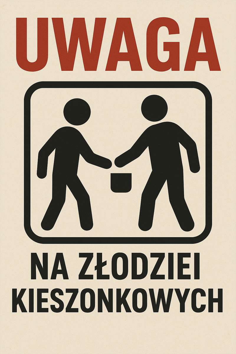 Złodzieje kieszonkowi wykorzystują naszą nieuwagę i bardzo często obserwują nas z pewnej odległości. Jeżeli zauważysz, że przy okazji różnych zakupów obok Ciebie znajdują się zawsze ta sama osoba, bądź czujny. To może być złodziej szykujący się do kradzieży.