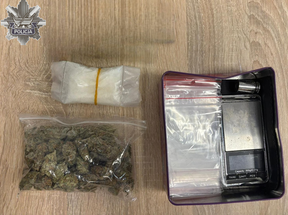 Swoje przypuszczenia potwierdzili 17 lutego 2026 roku - szukany przez nich mężczyzna był w wytypowanym wcześniej lokalu. Kiedy stróże prawa zatrzymywali go, we wnętrzu mieszkania wyczuli charakterystyczny zapach marihuany. W trakcie przeszukania znaleźli i zabezpieczyli ponad 80 gramów narkotyków oraz wagę i puste torebki z zapięciem strunowym. Badania potwierdziły, że zielony susz zawierał THC, a białe kryształy to mefedron.