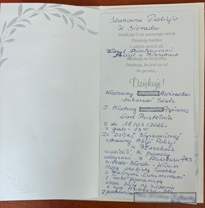 Wdzięczna mieszkanka Zduńskiej Woli nie kryła wzruszenia i podziękowała funkcjonariuszom mł. asp. Darii Pustelnik i mł. asp. Łukaszowi Szulcowi za okazaną pomoc, kierując również pisemne słowa uznania do Komendanta Powiatowego Policji w Sieradzu.