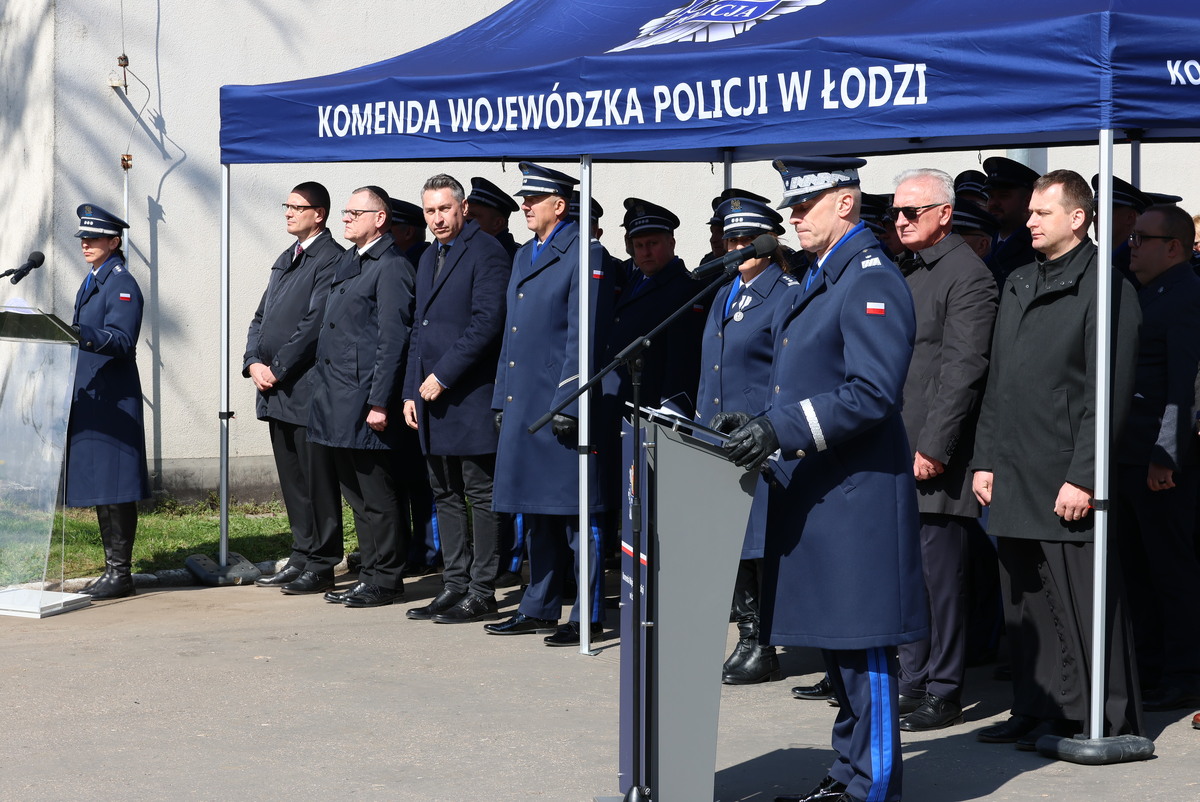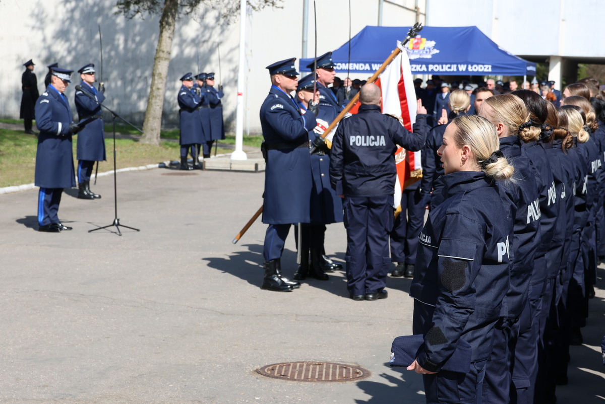 Komendant Wojewódzki Policji w Łodzi, nadinsp. Arkadiusz Sylwestrzak w swoim przemówieniu podkreślił, że dzisiejsze wydarzenia pokazują, że tradycja i nowoczesność idą w parze, a pamięć o przeszłości stanowi fundament dla budowania bezpiecznej przyszłości. Pogratulował szczególnie wszystkim nowo przyjętym funkcjonariuszom, życząc bezpiecznej służby, niegasnącej motywacji i odwagi, która prowadzi do podejmowania właściwych decyzji.