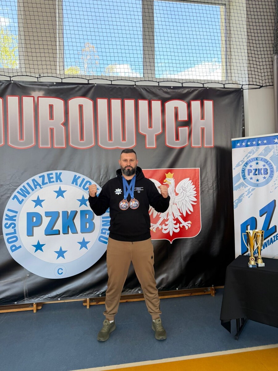 Równolegle, w dniach 24–26 kwietnia 2026 roku w Rusinowie odbył się Puchar Polski Służb Mundurowych w kickboxingu, zorganizowany pod patronatem Polskiego Związku Kickboxingu. W zawodach wzięło udział około 130 zawodników, co przełożyło się na wysoki poziom sportowej rywalizacji. Komendę Powiatową Policji w Brzezinach reprezentował młodszy aspirant Damian Jóźwiak, będący członkiem kadry Komendy Wojewódzkiej Policji w Łodzi. Po wymagających walkach eliminacyjnych oraz finałowych funkcjonariusz dwukrotnie stanął na podium, zdobywając 3. miejsce w kategorii point-fighting oraz 3. miejsce w formule K1. Warto podkreślić, że startował w jednej z najtrudniejszej, tak zwanej królewskiej kategorii wagowej, gdzie poziom rywalizacji jest wyjątkowo wysoki. Dodatkowo, reprezentacja Komendy Wojewódzkiej Policji w Łodzi wywalczyła drużynowo 1. miejsce, co stanowi duży sukces i potwierdzenie wysokiego poziomu wyszkolenia funkcjonariuszy.