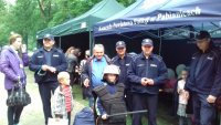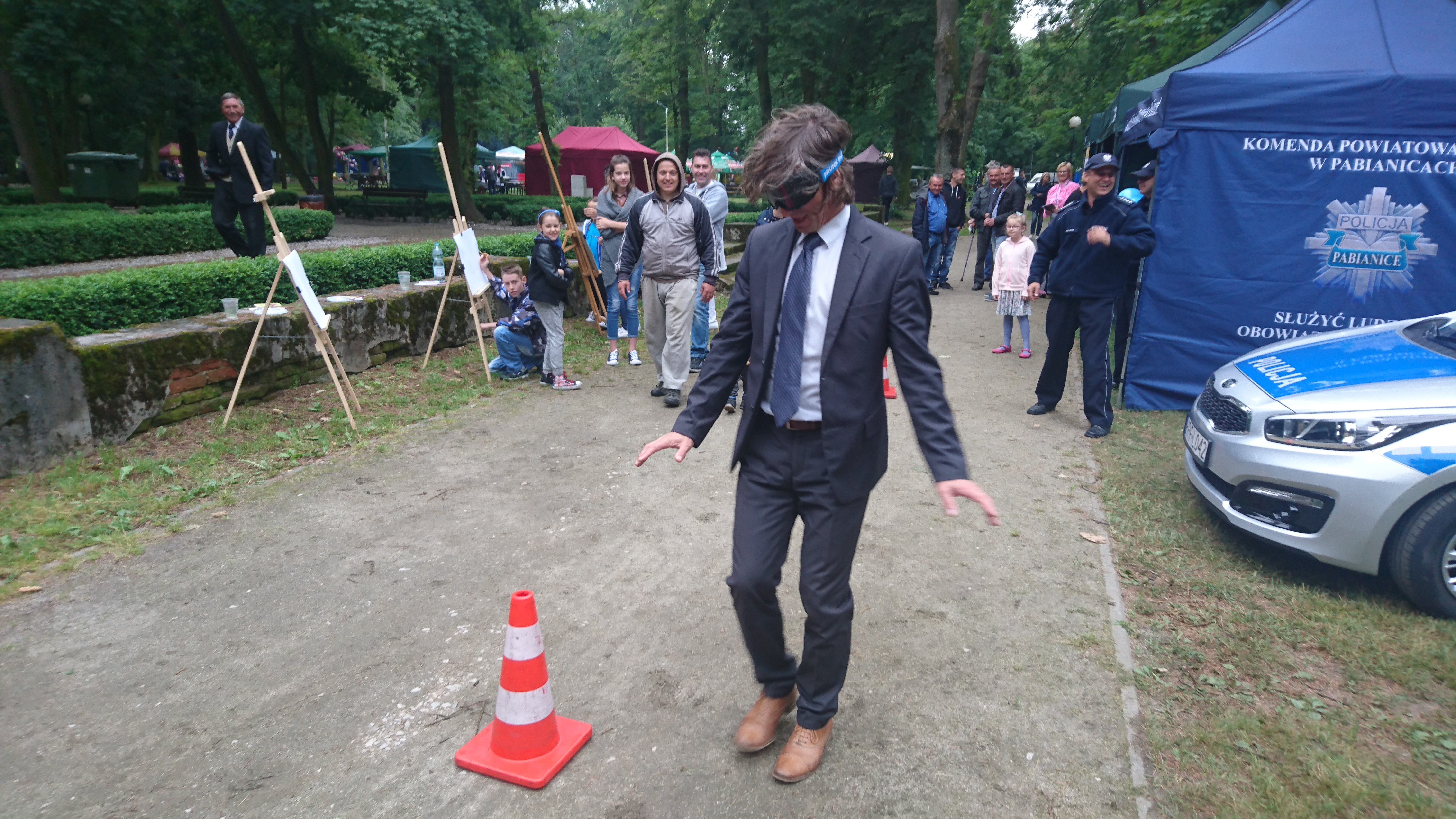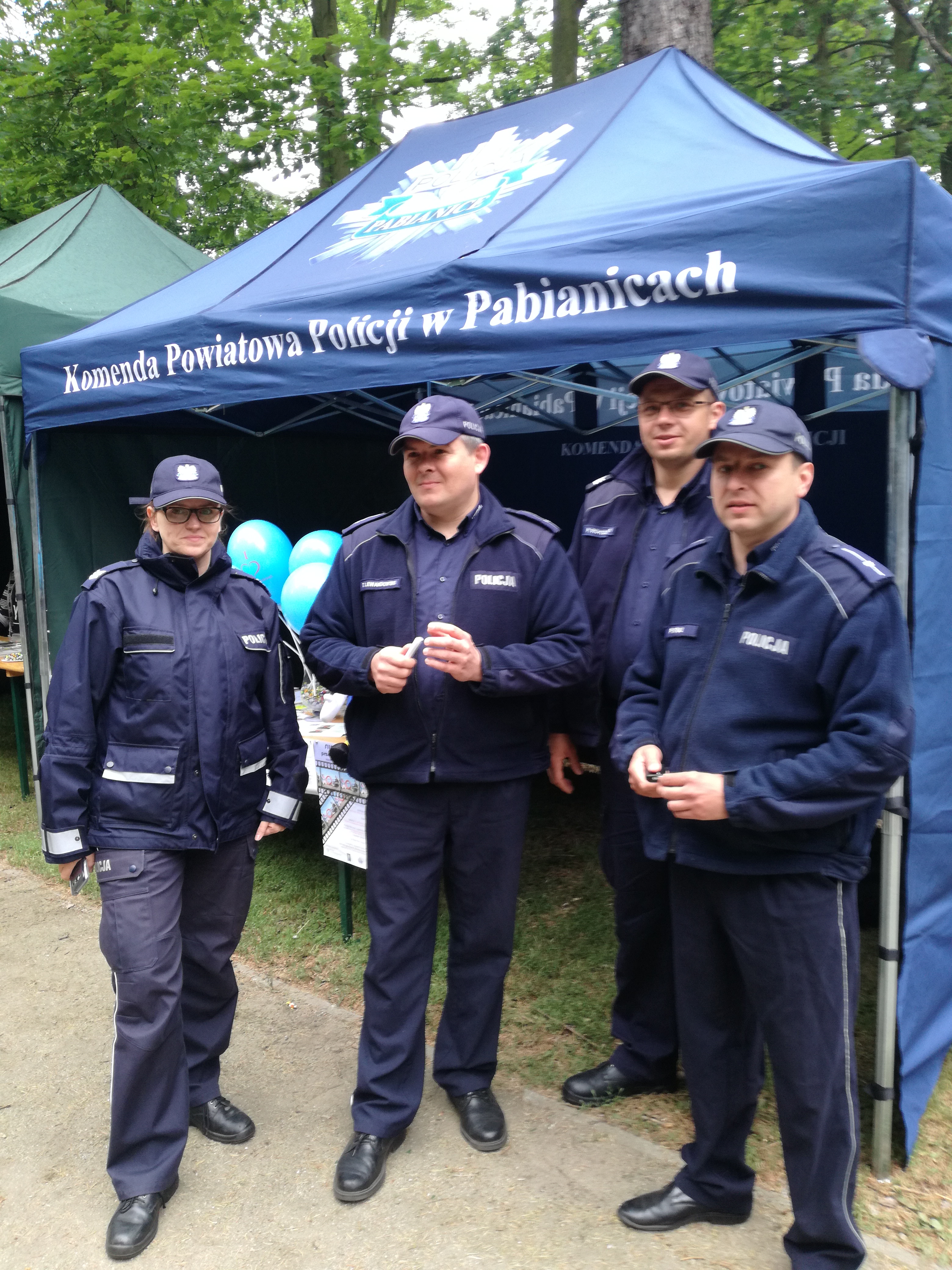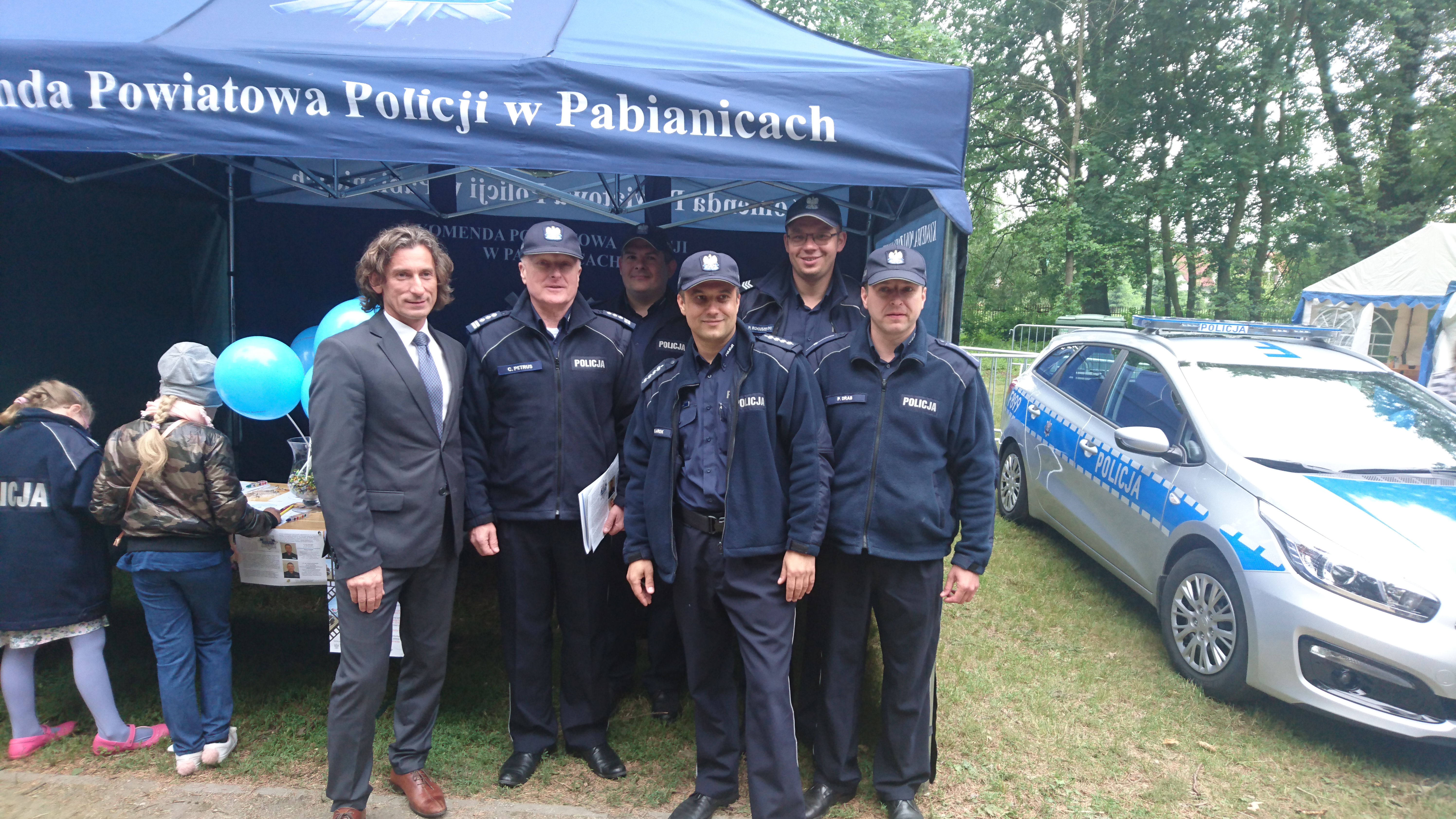 Podczas Dni Dobronia, wśród namiotów wielu wystawców nie zabrakło stoiska w barwach policyjnych. Pod granatowym namiotem Komendy Powiatowej Policji w Pabianicach na mieszkańców czekało wiele atrakcji. Każdy mógł usiąść za kierownicą radiowozu lub motocykla, włączyć sygnały, ubrać elementy policyjnego munduru i poczuć się jak prawdziwy policjant. Sprzęt policyjny cieszył się dużym zainteresowaniem nie tylko wśród najmłodszych, ale też dorosłych. Na dzieci prócz dawki wiedzy o bezpieczeństwie czekały niespodzianki. Milusińscy po namalowaniu prac związanych z policyjną tematyką otrzymywali od mundurowych elementy odblaskowe ufundowane przez wójta gminy Dobroń, a także baloniki i słodycze. Niewątpliwą atrakcją dla odwiedzających policyjne stoisko były alkogogle. Dzięki temu urządzeniu w atmosferze świetnej zabawy każdy kierowca mógł uświadomić sobie, jakim zagrożeniem jest jazda na podwójnym gazie. Smaczku tej niepowtarzalnej lekcji dodawała pozornie prosta konkurencje polegająca na slalomie między pachołkami, która przy zaburzonej koordynacji wzorkowo-ruchowej stała się nie lada wyzwaniem. Sobotni festyn stworzył też możliwość promowania programu prewencyjnego „Dzielnicowy bliżej nas”. Trzej dzielnicowi z Posterunku Policji w Piątkowisku byli dla mieszkańców na wyciągnięcie ręki. W rozmowach poruszali zagadnienia związane z prewencją kryminalną oraz przybliżali mieszkańcom funkcjonowanie aplikacji moja komenda i krajowej mapy zagrożeń bezpieczeństwa. Mieszkańcy mogli również porozmawiać z będącym na miejscu szefem pabianickiej policji insp. Cezarym Petrusem oraz kierownikiem miejscowego posterunku asp. szt. Rafałem Ceglarkiem.