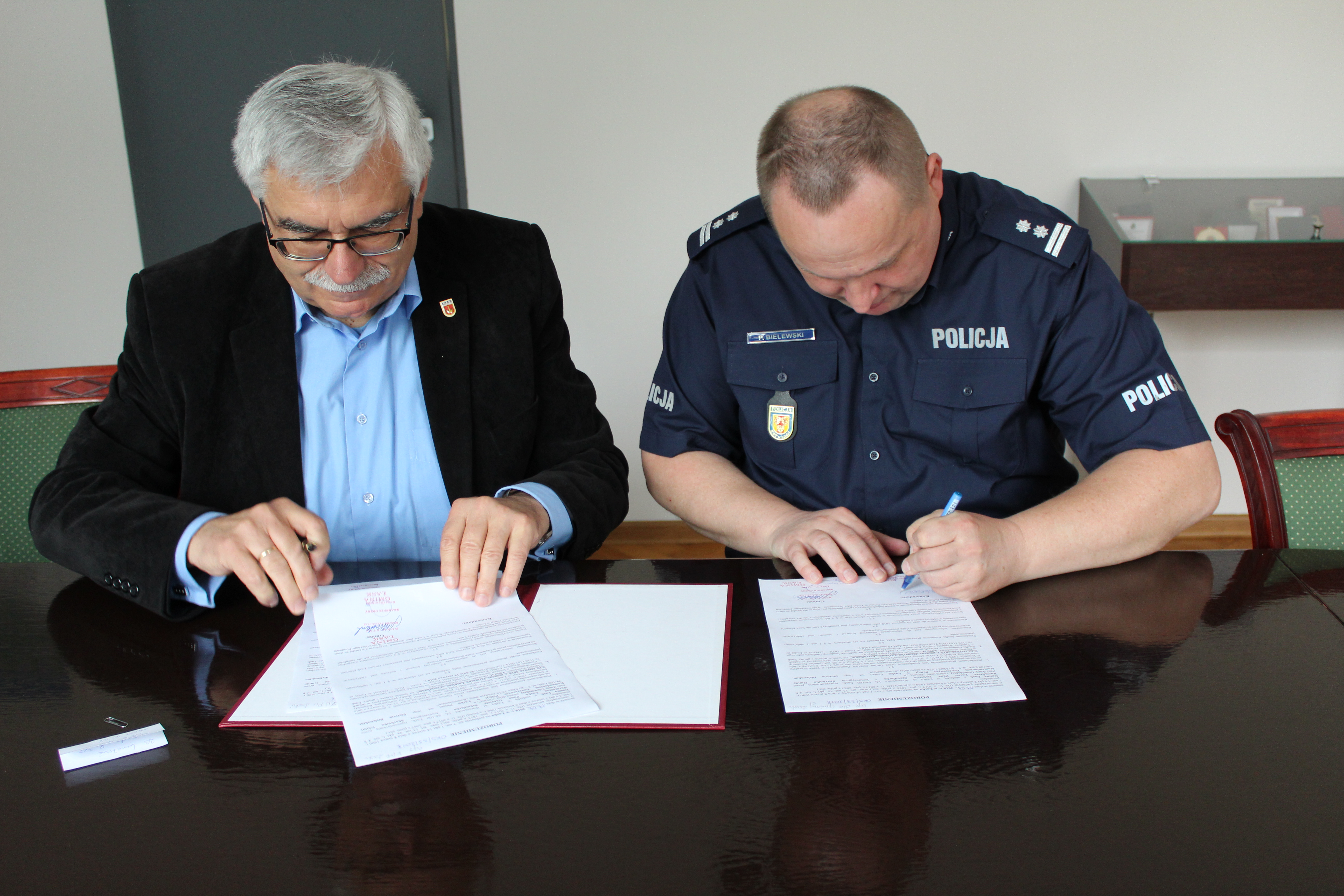 Mł. insp. Piotr Bielewski Komendant Powiatowy Policji w Łasku oraz Gabriel Szkudlarek, burmistrz Łasku, podpisali porozumienie w sprawie zorganizowania służb ponadnormatywnych funkcjonariuszy policji na terenie Łasku podczas czerwcowego Jarmarku Łaskiego. Burmistrz miasta wraz z komendantem powiatowym mając na uwadze dążenie do poprawy bezpieczeństwa i porządku publicznego na terenie miasta dzięki zrozumieniu i przychylności Rady Miejskiej, podjęli decyzję o zwiększeniu liczby patroli policyjnych, poprzez zorganizowanie dodatkowych służb prewencyjnych.