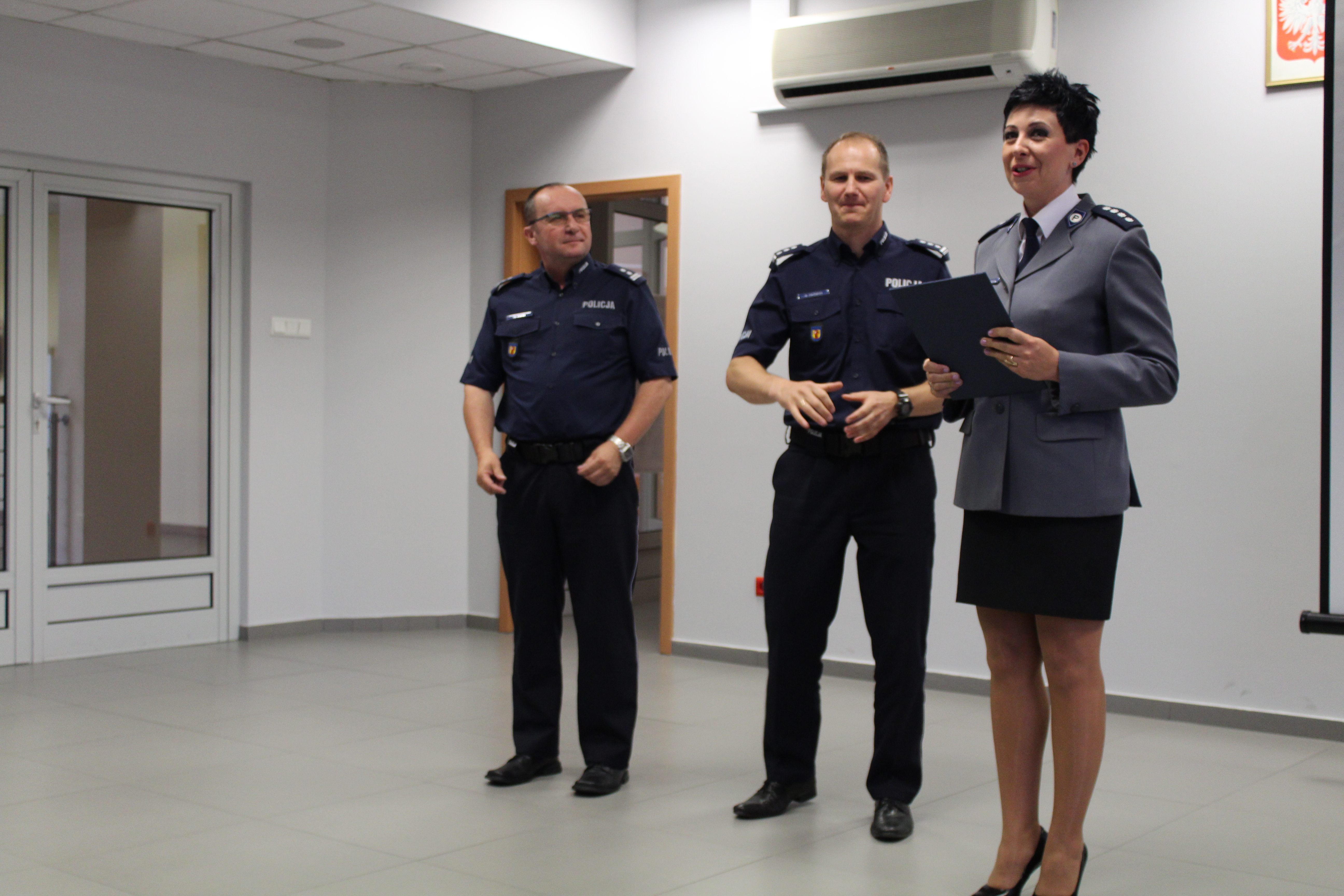 Policjantkę pożegnał Komendant Powiatowy Policji w Tomaszowie Maz. insp. Szymon Herman oraz Zastępca Komendanta Powiatowego Policji w Tomaszowie Maz. mł. insp. Wojciech Tatar, którzy wręczyli jej w imieniu policjantów pamiątkowy dyplom oraz zdjęcie, a także podziękowali za dotychczasową służbę.