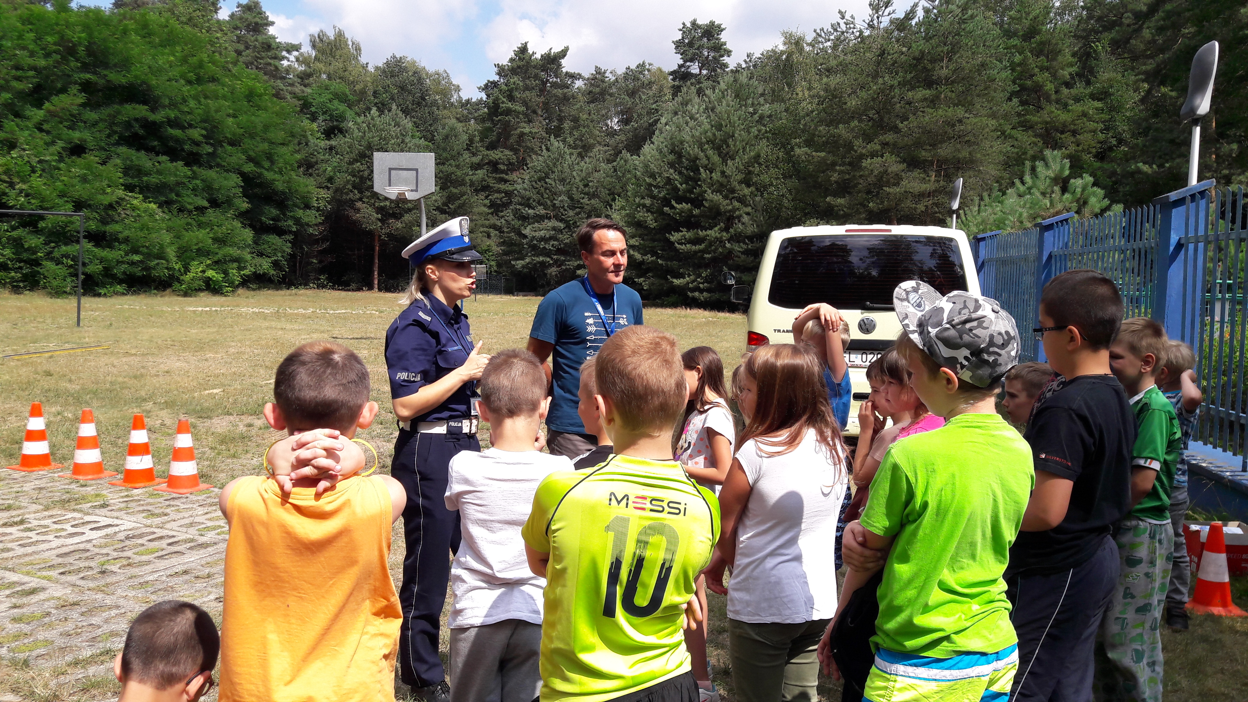 12 lipca 2018 roku policjanci łódzkiej drogówki wraz przedstawicielem Wojewódzkiego Ośrodka Ruchu Drogowego w Łodzi odwiedzili małych łodzian którzy wypoczywają na koloniach w Grotnikach.