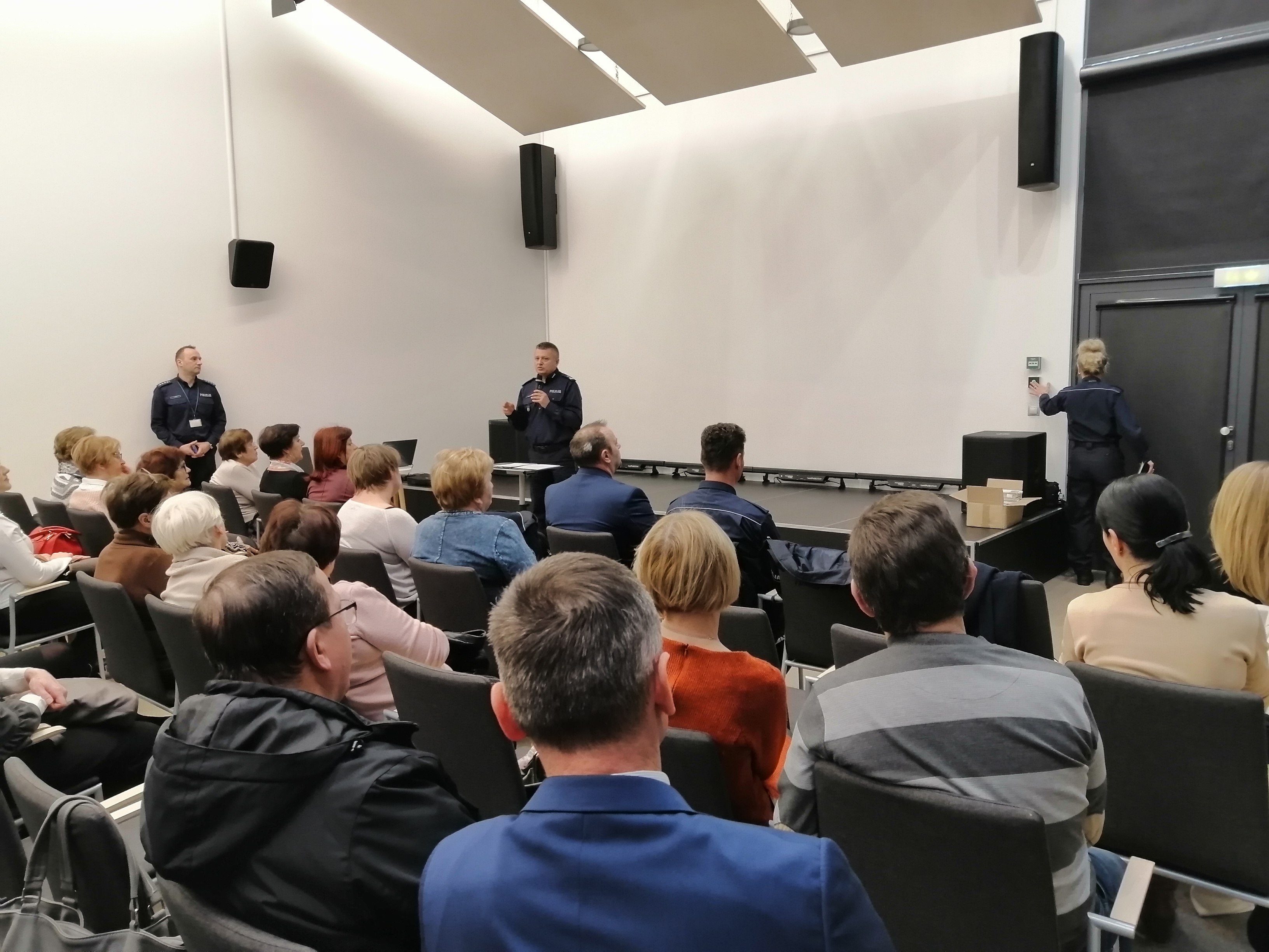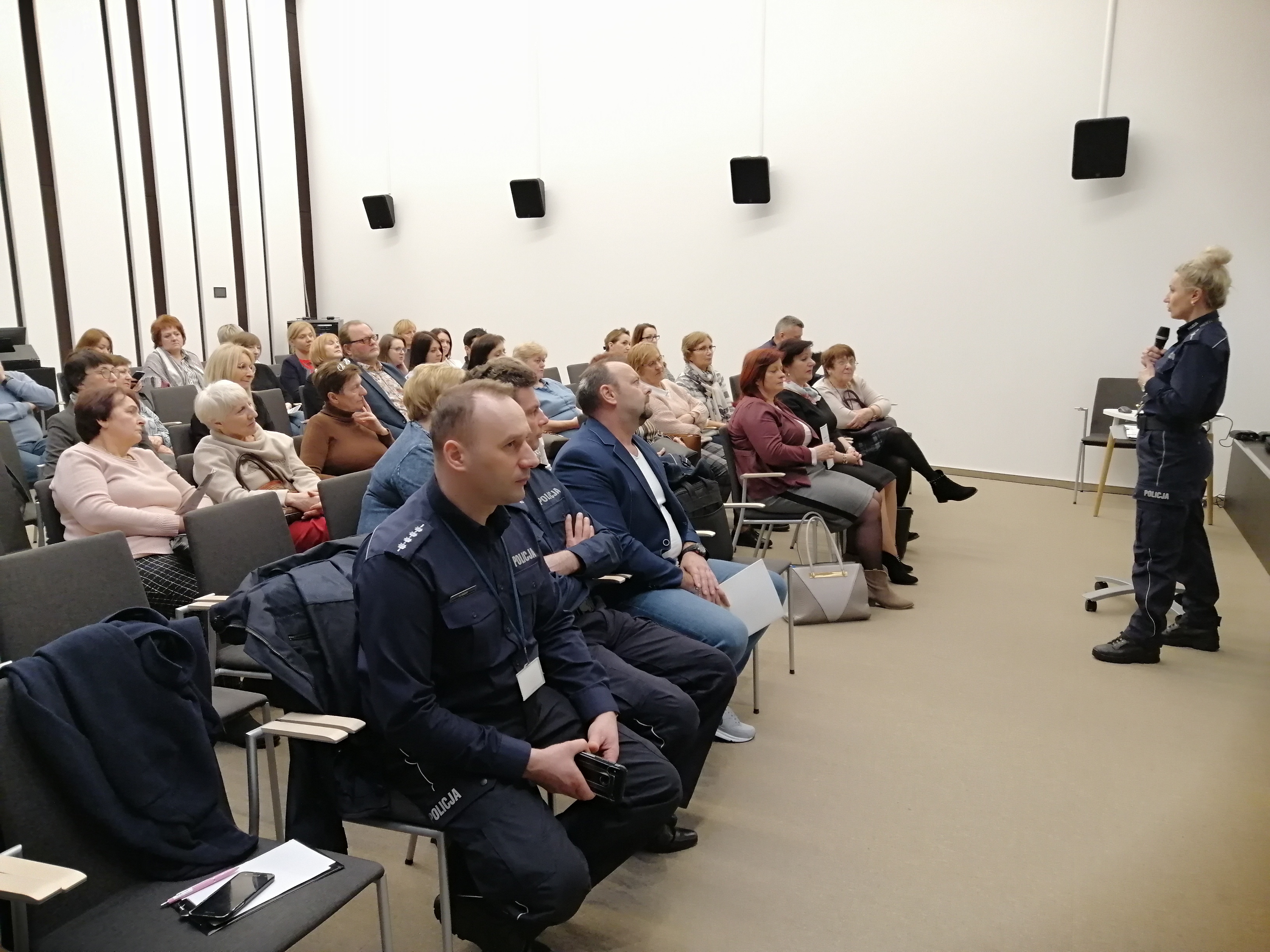 Prelegenci przestrzegali też seniorów przed oszustami podszywającymi pod np. przedstawicieli ośrodków pomocy społecznej, którzy wchodzą do mieszkania. Jedna z tych osób zagaja seniora rozmową a druga sprawdza mieszkanie szukając pieniędzy czy wartościowych przedmiotów.