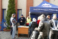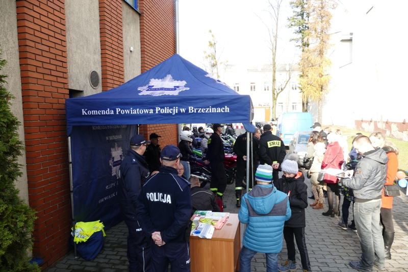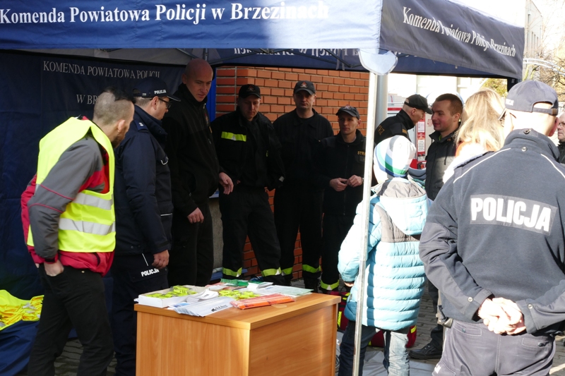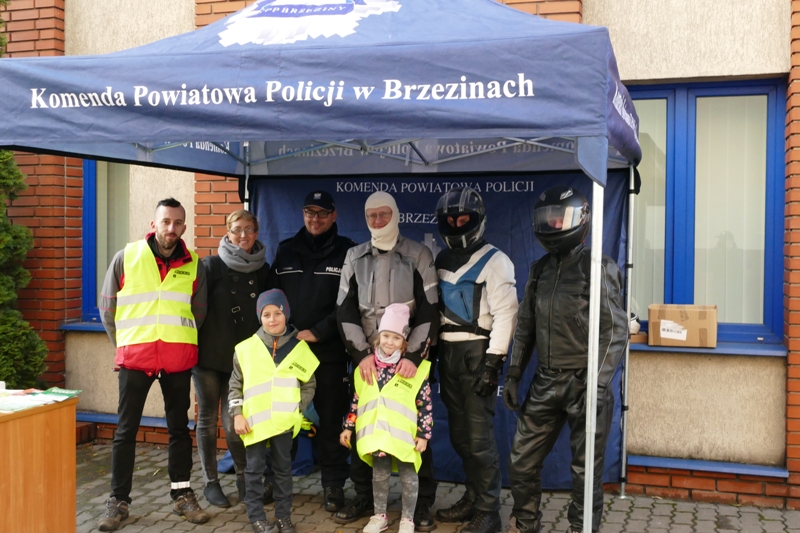 W związku z tym w dniu dzisiejszym brzezińska policja wspólnie z Klubem Motocyklowym EBeeRy Brzeziny oraz strażakami z PSP w Brzezinach zorganizowała akcję poświęconą promowaniu bezpiecznych zachowań na drodze. Policjanci Zespołu Ruchu Drogowego wraz z motocyklistami wyruszyli na ulice miasta Brzeziny, a następnie na parkingu przed budynkiem Centrum Promocji i Kultury w Brzezinach w specjalnie przygotowanym namiocie Komendy Powiatowej Policji w Brzezinach wraz z dzielnicowym mł. asp. Sławomirem Stańczykiem oraz specjalistą profilaktyki społecznej podkom. Tomaszem Żaczkiem wręczali wszystkim uczestnikom elementy odblaskowe oraz przeprowadzali pogadanki na temat bezpieczeństwa w ruchu drogowym. Najmłodsi otrzymywali odblaskowe breloczki i opaski, a ci nieco starsi kamizelki odblaskowe. Jak duży wpływ na poprawę widoczności w okresie jesienno-zimowym mają elementy odblaskowe, potwierdzają to statystyki wypadków z udziałem tak zwanych „niechronionych” użytkowników dróg. Akcja prowadzona na terenie miasta Brzeziny, cieszyła się wielkim zainteresowaniem. W niespełna dwie godziny rozdano ponad 200 elementów odblaskowych i kamizelek. Działania te nie tylko mają na celu upamiętnienie pamięci ofiar wypadków drogowych, ale przede wszystkim poprawę bezpieczeństwa użytkowników dróg, szczególnie pieszych i rowerzystów. Przypominamy, że od 31 sierpnia 2014 r. każdy pieszy, który porusza się po zmierzchu po drodze poza obszarem zabudowanym, musi mieć odblask umieszczony w sposób widoczny dla kierujących. Miejmy nadzieję, że obdarowane osoby uświadomione przez mundurowych, że odblask ratuje życie będą używały kamizelek podczas poruszania się po drogach „świecąc” przykładem. Ponadto każdy chętny mógł poćwiczyć na przygotowanym przez brzezińskich strażaków fantomie resuscytację krążeniowo-oddechową. Chętnych nie brakowało.