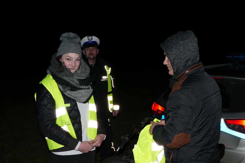Kontynuując akcję po zapadnięciu zmroku funkcjonariusze Zespołu Ruchu Drogowego brzezińskiej komendy w celu poprawy bezpieczeństwa pieszych i rowerzystów, w trakcie patrolowania dróg gminy Dmosin wręczali wszystkim napotkanym kamizelki odblaskowe, co spotkało się ze zdziwieniem jak i zadowoleniem ze strony obdarowanych.