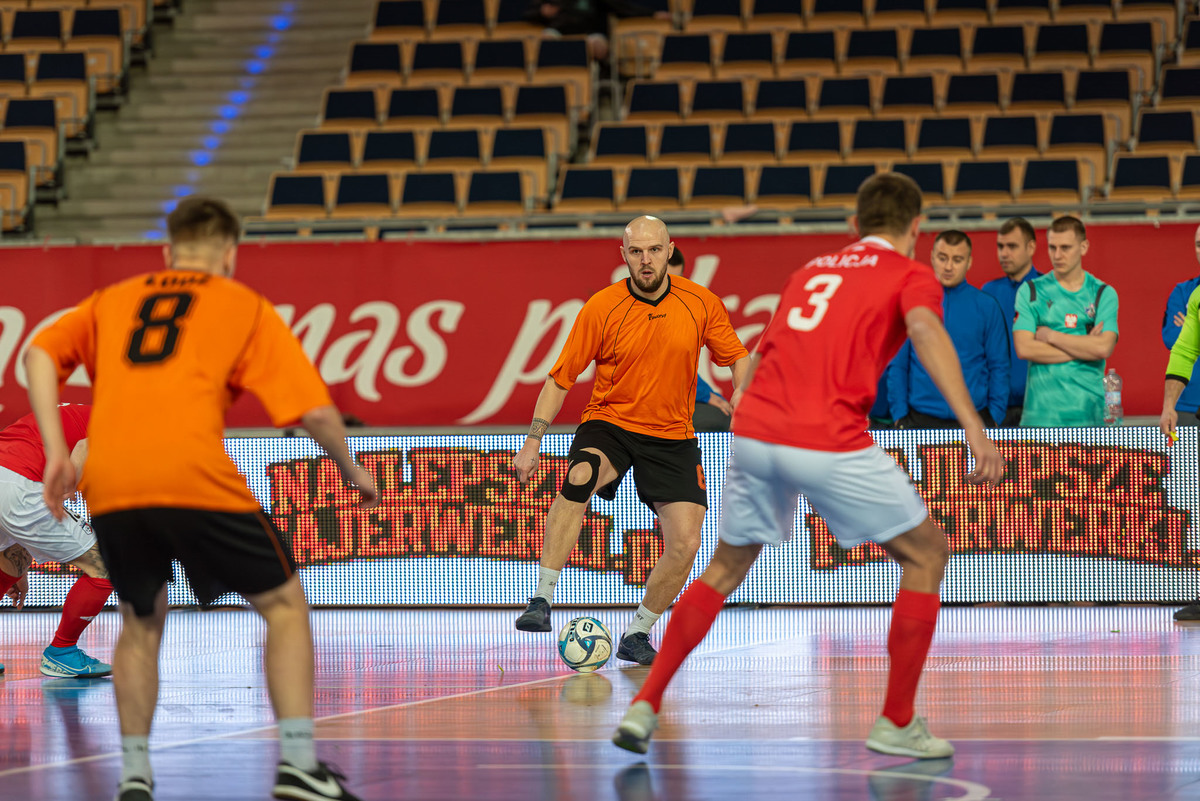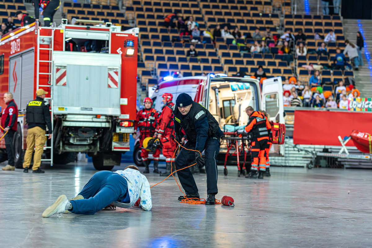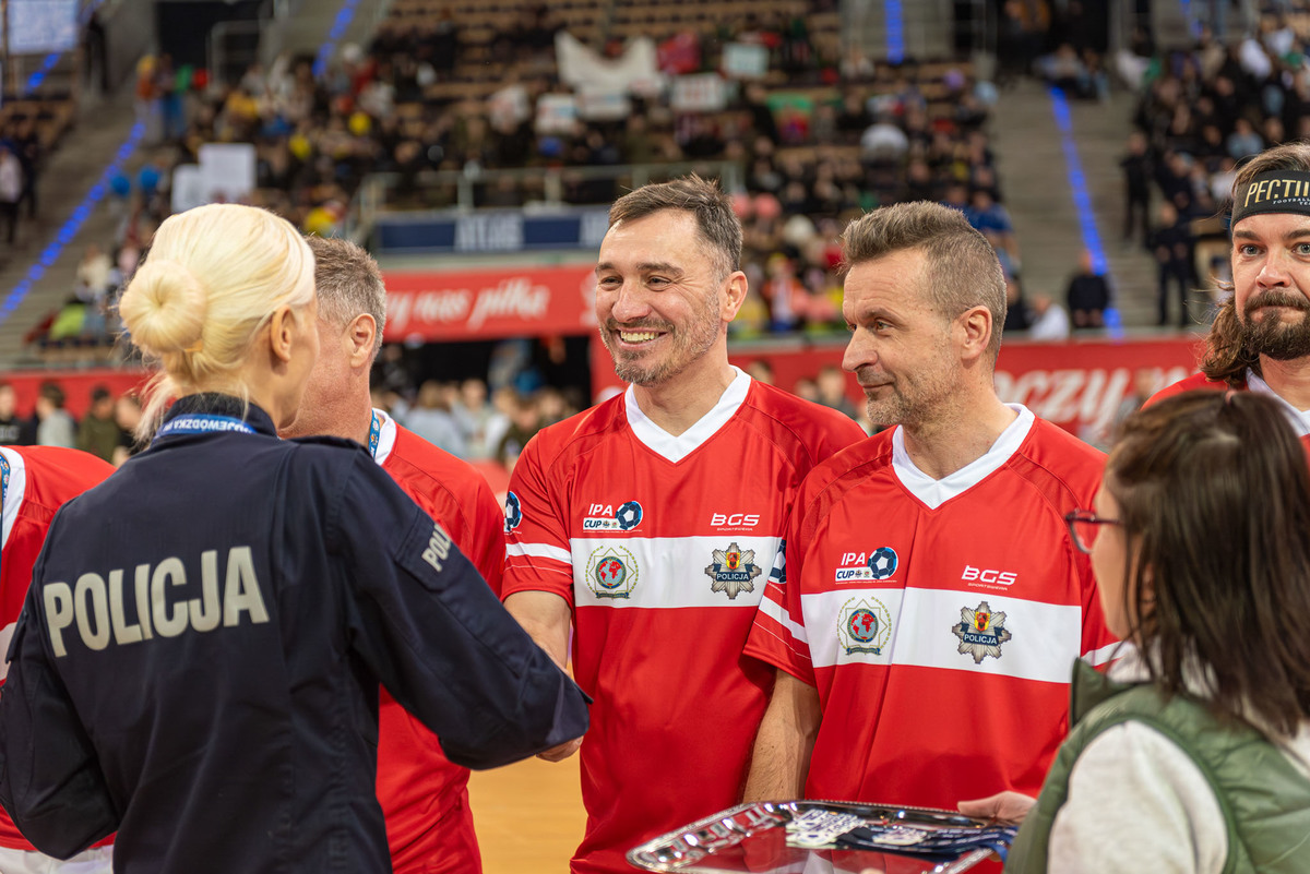 Charytatywny turniej zorganizowany przez Komendę Wojewódzką Policji w Łodzi oraz Łódzką Grupę Wojewódzką Międzynarodowego Stowarzyszenia Policji odbył się 11 stycznia 2024 roku na terenie łódzkiej Atlas Areny. Piłkarskie rywalizacje o miejsce ,,na pudle” zainaugurował mecz pomiędzy drużyną IPA KWP w Łodzi a 6. Batalionem z Gliwic. Zaangażowanie towarzyszące zawodnikom obu drużyn kilka razy przechylało szalę zwycięstwa raz na jedną, to na drugą stronę, by zakończyć się remisem 1:1. Piłkarskie zmagania zagrzały do sportowej walki reprezentantów kolejnych 10 drużyn turniejowych. Działo się! Kibicujące zespoły ze szkół podstawowych i placówek oświatowych ponadpodstawowego szczebla z terenu województwa łódzkiego dawały z siebie wszystko by wesprzeć piłkarzy. Turniejowym spotkaniom drużyn piłkarskich towarzyszyły też inne wydarzenia. Była symulacja akcji ratunkowej wobec osoby, pod którą załamał się lód i dużo treści o bezpieczeństwie podczas zimowego wypoczynku, bo już niebawem uczniowie rozpoczną wyczekiwane z niecierpliwością ferie. Szereg profilaktycznych gier, zabaw, konkursów profilaktycznych dotyczyło bezpiecznych zachowań. Nie zabrakło policyjnych znawców zasad bezpieczeństwa – Kota Prewencjusza i Komisarza Błyska. Pokaz sprzętu jaki na co dzień wykorzystują funkcjonariusze Samodzielnego Pododdziału Kontrterrorystycznego Policji w Łodzi, policjanci prewencji omawiający zasady bezpieczeństwa, o zachowaniach zgodnych z przepisami mundurowi z Wydziału Ruchu Drogowego, policyjni profilaktycy z całego garnizonu, stoisko doborowe, pokaz taktyk i technik interwencji, to kolejne atrakcje towarzyszące rozgrywkom. W krzewieniu bezpiecznych postaw wspierały nas także inne służby i instytucje: Centrum Powiadamiania Ratunkowego w Łodzi, Wodne Ochotnicze Pogotowie Ratunkowe województwa łódzkiego, Państwowa Straż Pożarna w Łodzi, Kasa Rolniczego Ubezpieczenia Społecznego w Łodzi, Wojewódzka Stacja Ratownictwa Medycznego Łodzi, 1 Batalion Kawalerii Powietrznej w Leźnicy Wielkiej oraz Wojewódzkiego Ośrodka Ruchu Drogowego w Łodzi.