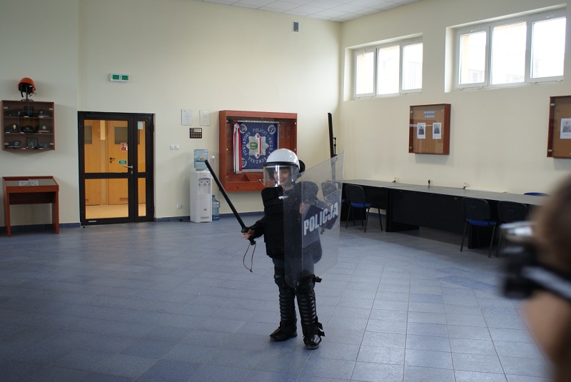 Dla naszych gości był to z pewnością ciekawy element wspólnie spędzanego wypoczynku. Swoje miejsce znalazły oczywiście informacje o bezpiecznym wypoczynku podczas ferii, kontaktach z osobami obcymi, zachowaniu w przypadku ataku groźnego psa. Nasi goście zakładając alkogogle „na własnej skórze” mogli przekonać się jak zachowuje się organizm po wypiciu alkoholu i czy jazda autem w takich przypadkach może być bezpieczna. Przejście kilku metrów w alkogoglach w linii prostej wcale nie było takie łatwe. Jak zwykle najbardziej interesowały dzieciaki zagadnienia związane z ujawnianiem i zabezpieczaniem śladów na miejscu przestępstwa, odwiedziły pomieszczenie gdzie wykonuje się zdjęcia sygnalityczne oraz daktyloskopię. Z kolei szczególnie „męska” część gości żywo zainteresowana była oglądaniem radiowozów oraz sprzętu policyjnego, używanego przez policjantów na zabezpieczeniach imprez masowych.