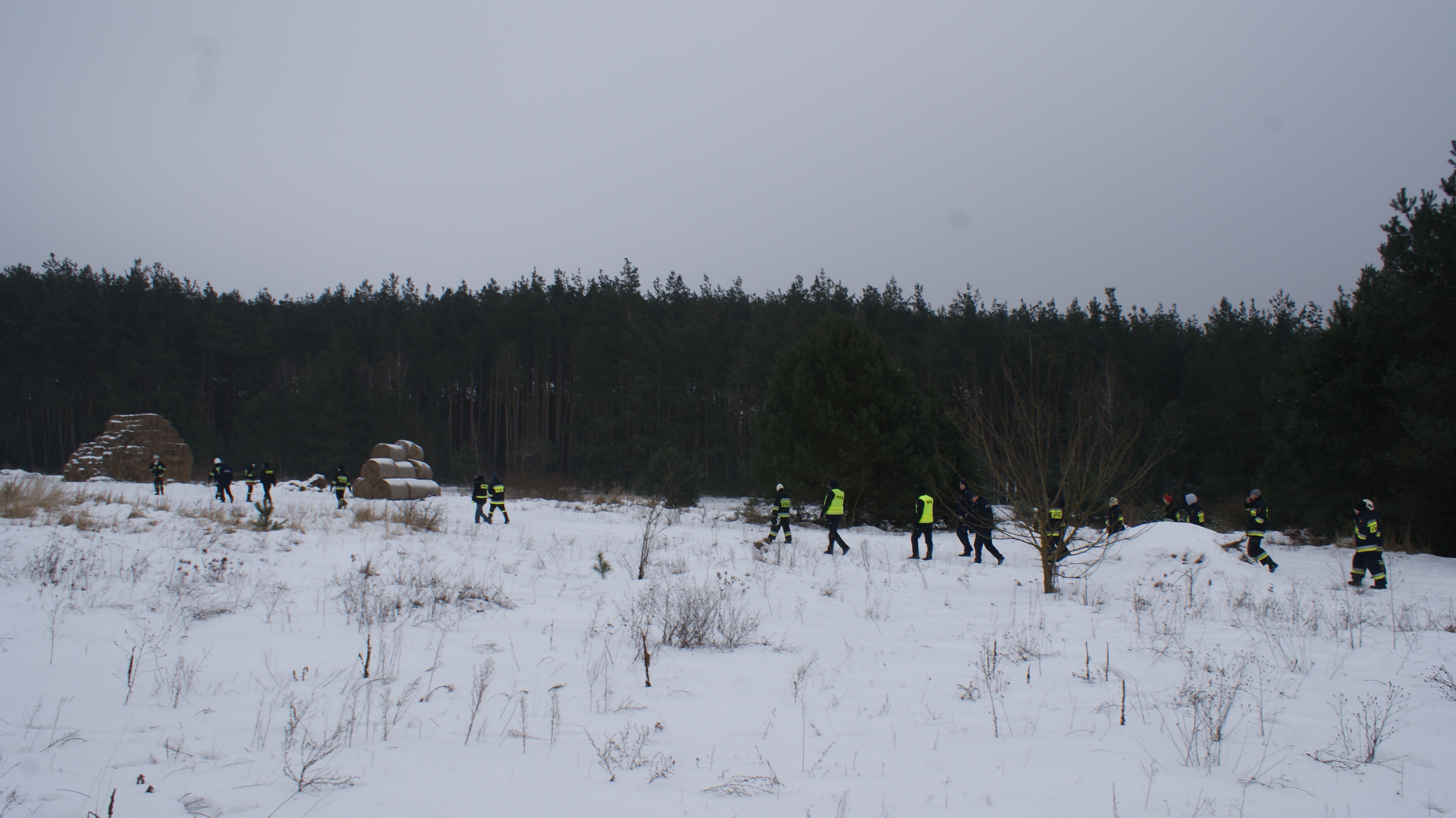 W obawie o życie i zdrowie kobiety do poszukiwań zaangażowanych zostało ponad 33 policjantów. W poszukiwania włączyło się 26 strażaków OSP i ponad 15 mieszkańców. Każdy z funkcjonariuszy otrzymał niezbędne informacje o kobiecie pozwalające na jej identyfikację. W miejscu zamieszkania policjanci wraz ze strażakami i mieszkańcami przeszukiwali pobliskie lasy. Kolejni policjanci w tym czasie patrolowali drogi i dukty leśne, i ten kierunek działań działoszyńskich funkcjonariuszy przyniósł szczęśliwe zakończenie poszukiwań. Policjanci dzięki śladom na śniegu udali się do lasu gdzie w odległości ponad 6 kilometrów od domu i najbliższej miejscowości odnaleźli zziębniętą kobietę. Następnie policjanci zabrali kobietę do radiowozu i przywieźli do miejsca zamieszkania gdzie dalej pod opiekę medyczną została przekazana zespołowi karetki pogotowia, która już czekała na miejscu. Odnaleziona kobieta została odwieziona do Szpitala w Bełchatowie.