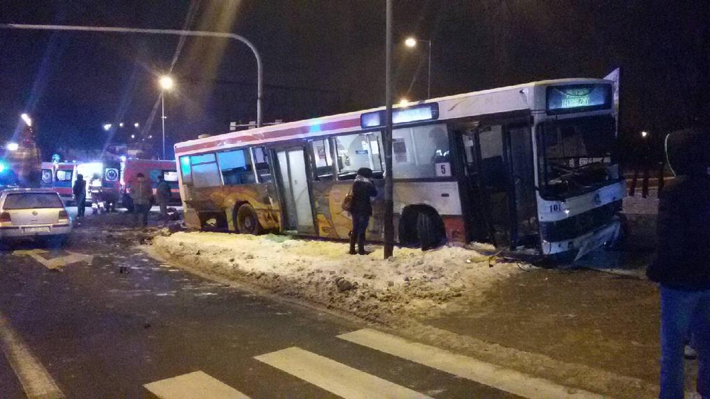 Ze wstępnych ustaleń funkcjonariuszy wynika, że 47- letni piotrkowianin kierujący autobusem komunikacji miejskiej jadąc ulicą Kostromską w kierunku ulicy Dmowskiego nie ustąpił pierwszeństwa przejazdu, w wyniku czego doprowadził do zderzenia z pojazdami osobowymi renault megane i volkswagen polo. Kierowcy samochodów osobowych jechali ulicą Sikorskiego w kierunku miasta. Kierujący autobusem przejeżdżał skrzyżowanie przy włączonej pulsującej światłem pomarańczowym sygnalizacji świetlnej. W wyniku zdarzenia 9 osób doznało obrażeń ciała. Poszkodowani w zdarzeniu zostali przewiezieni do szpitali w Piotrkowie Trybunalskim i Bełchatowie. Trzy osoby spośród nich po udzieleniu pomocy medycznej zostały zwolnione do domu. Na szczęście w groźnie wyglądającym wypadku nie było ofiar śmiertelnych. Kierowca autobusu oraz 23- letni mężczyzna kierujący samochodem renault i 20- letni kierowca volkswagena byli trzeźwi. Policjanci wyjaśniają dokładne przyczyny i okoliczności zaistniałego zdarzenia drogowego.