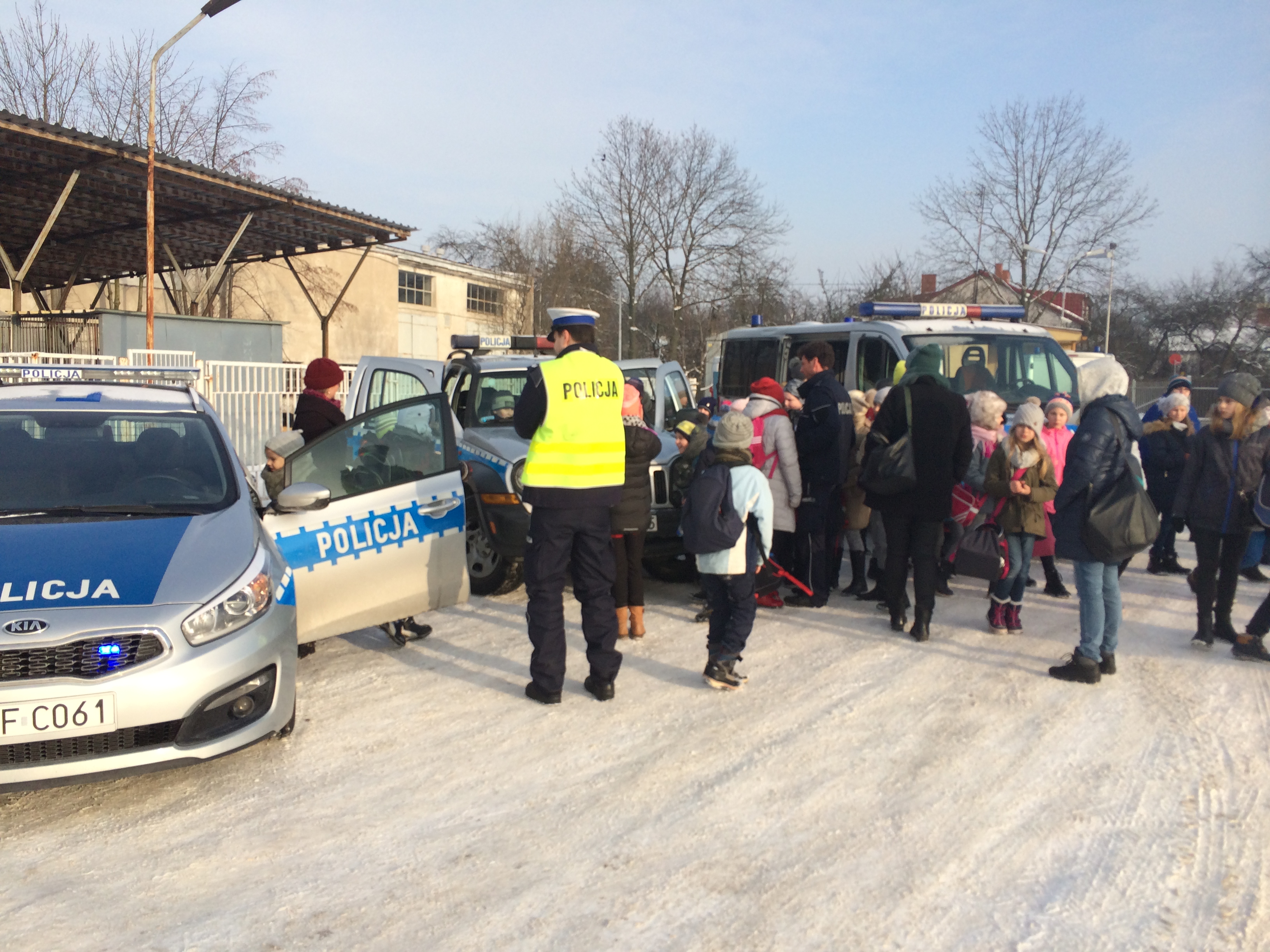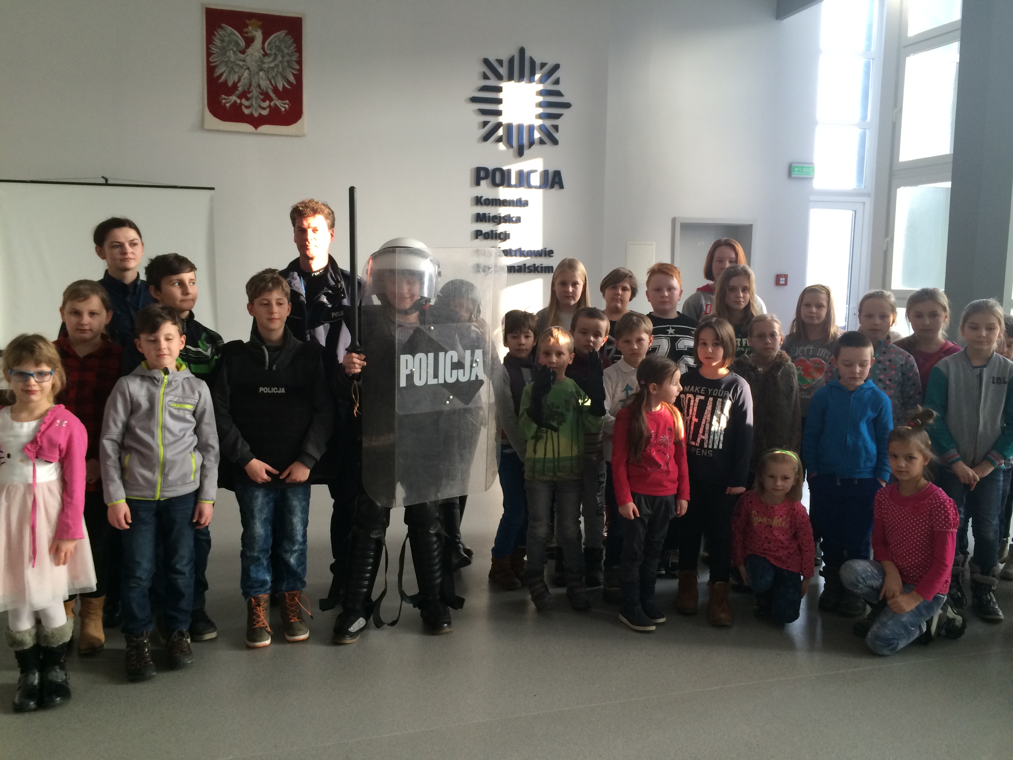 19 stycznia 2017r dzieci z Domu Kultury w Moszczenicy i grupka najmłodszych uczniów odpoczywających na półkoloniach w Piotrkowie Trybunalskim miło spędziła czas zwiedzając piotrkowską komendę Policji. Funkcjonariusze wieloma atrakcjami zajęli dzieciom dwie godziny z dala od nudy i monotonii. Ale było bezpiecznie i wesoło. Funkcjonariusze dużo mówili o bezpieczeństwie podczas wolnych zimowych dni. Milusińscy obejrzeli przygotowane krótkie filmiki na temat bezpieczeństwa w ruchu drogowym. Dowiedziały się jak bezpiecznie przechodzić przez jezdnię a także otrzymały wskazówki jak skutecznie ustrzec się przed atakiem psa. Policjantka prowadząca dzisiejsze zajęcia kierowała pochwały za wiedzę jaką wykazali się mali uczniowie. Milusińscy obejrzeli sprzęt jakim dysponuje policja, z wielką ochotą przymierzały kamizelki mimo iż były zbyt duże i zbyt ciężkie.
