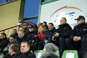 Niemieccy koledzy mieli okazję obserwować zabezpieczenie meczu piłki nożnej pomiędzy drużynami GKS Bełchatów - Ruch Chorzów, zachowanie kibiców, a także wzięli udział w odprawie służbowej związanej z przedmiotowym wydarzeniem sportowym. W programie spotkania znalazło się także zwiedzanie Kopalni i Elektrowni Bełchatów.