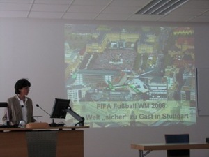 - wizytę w komendzie Policji w Stuttgarcie, zaznajomienie się z problematyką związaną z pseudokibicami oraz przygotowaniem i przebiegiem Mistrzostw Świata w Piłce Nożnej w 2006 r., odwiedzenie stadionu Mercedes Benz Arena w Stuttgarcie oraz omówienie jego poszczególnych elementów;