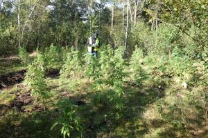 Bełchatowscy policjanci w lesie na terenie gminy Szczerców ujawnili plantację marihuany. Zabezpieczono 110 krzaków konopi indyjskich w różnych fazach wzrostu.
