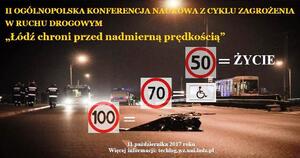 11 października 2017 roku w godz. 10:00-14:00 Komenda Miejska Policji w Łodzi wspólnie z Centrum Technologii Bezpieczeństwa w Logistyce Uniwersytetu Łódzkiego organizuje konferencję naukową pod nazwą „Zagrożenia w ruchu drogowym. Łódź chroni przed nadmierną prędkością”.